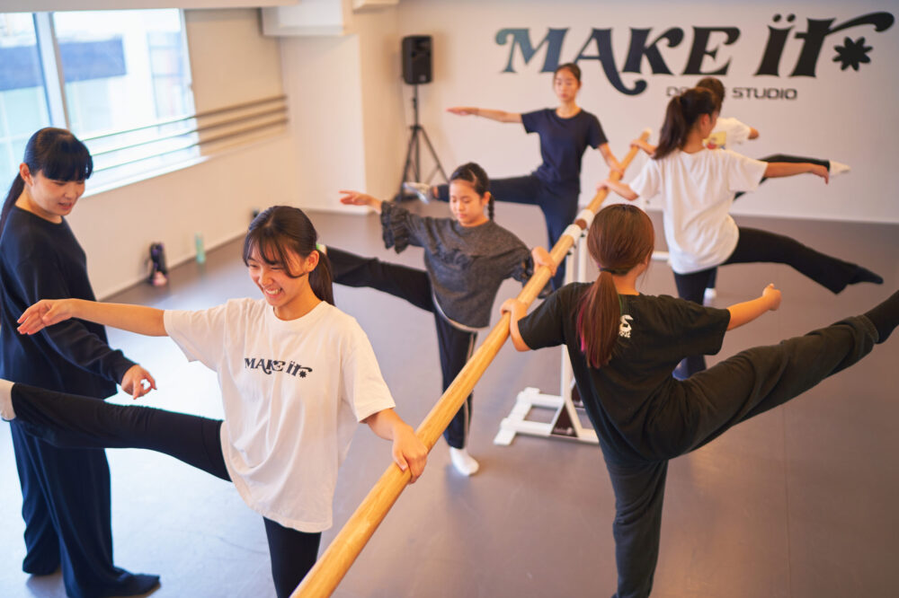 MAKE ITは福岡市の地下鉄西新駅からすぐの便利な立地にあるダンススタジオです。芸能事務所でのアーティストやアイドル育成など、エンターテイメント業界で長年の経験を積んだプロの講師陣が指導します。初心者から経験者まで、それぞれのレベルに応じたレッスンを提供し皆さまのダンスライフをサポートします。